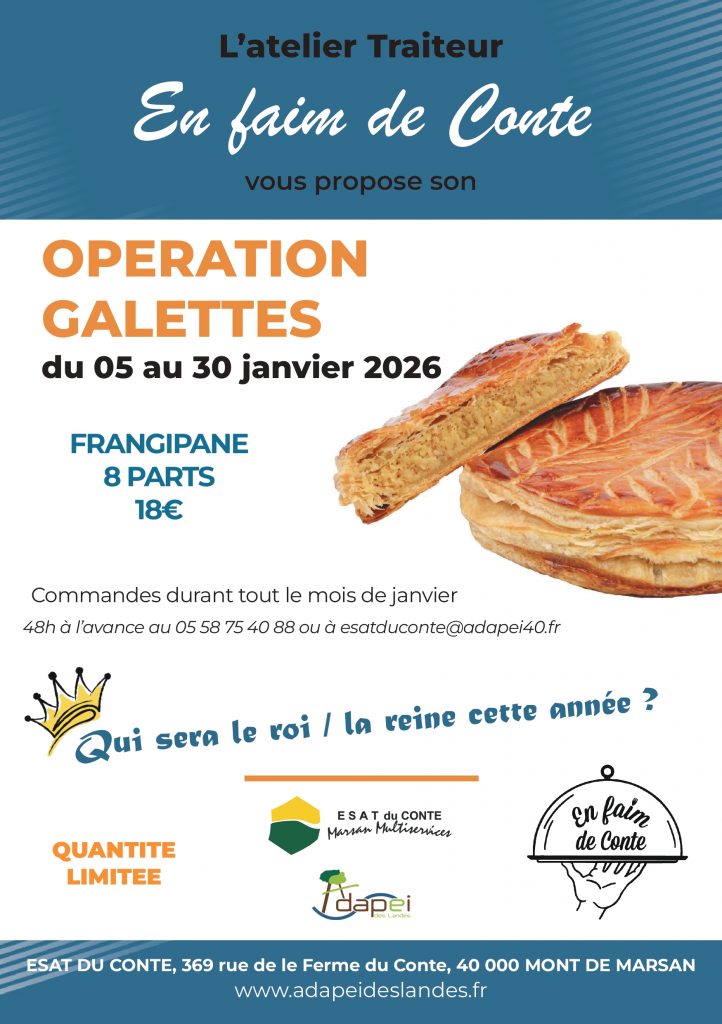 L’atelier traiteur En Faim de Conte vous propose de délicieuses galettes des rois à la frangipane